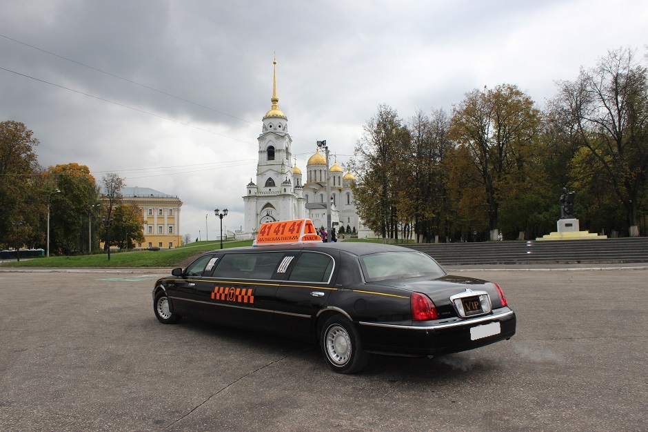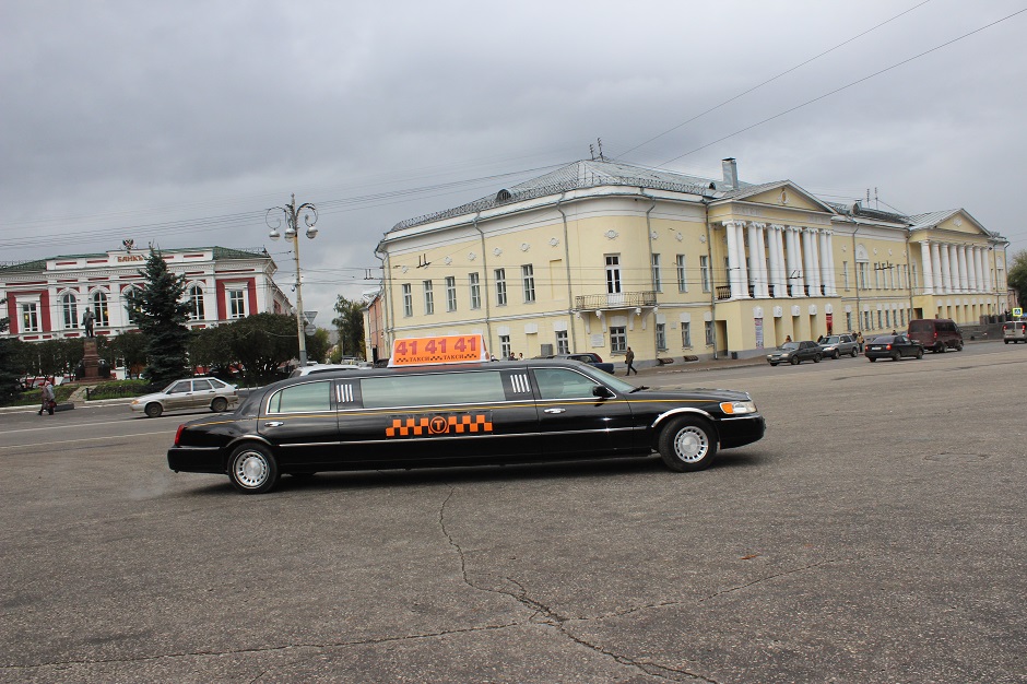 Фирменный лимузин марки Lincoln Town Car является визитной карточкой диспетчерской службы "Такси 41". Автомобиль используется для проведения промо-акций и различных рекламных мероприятий. Такой автомобиль не останется незамеченым не только потому, что его длинна составляет без малого 10 метров, а еще и потому, что на крыше установлены фирменные шашки такси 41-41-41. Поездка на таком автомобиле такси вызывает поистине удивительные чувства. Диспетчерская служба "Такси 41" желает Вам доброго пути!
